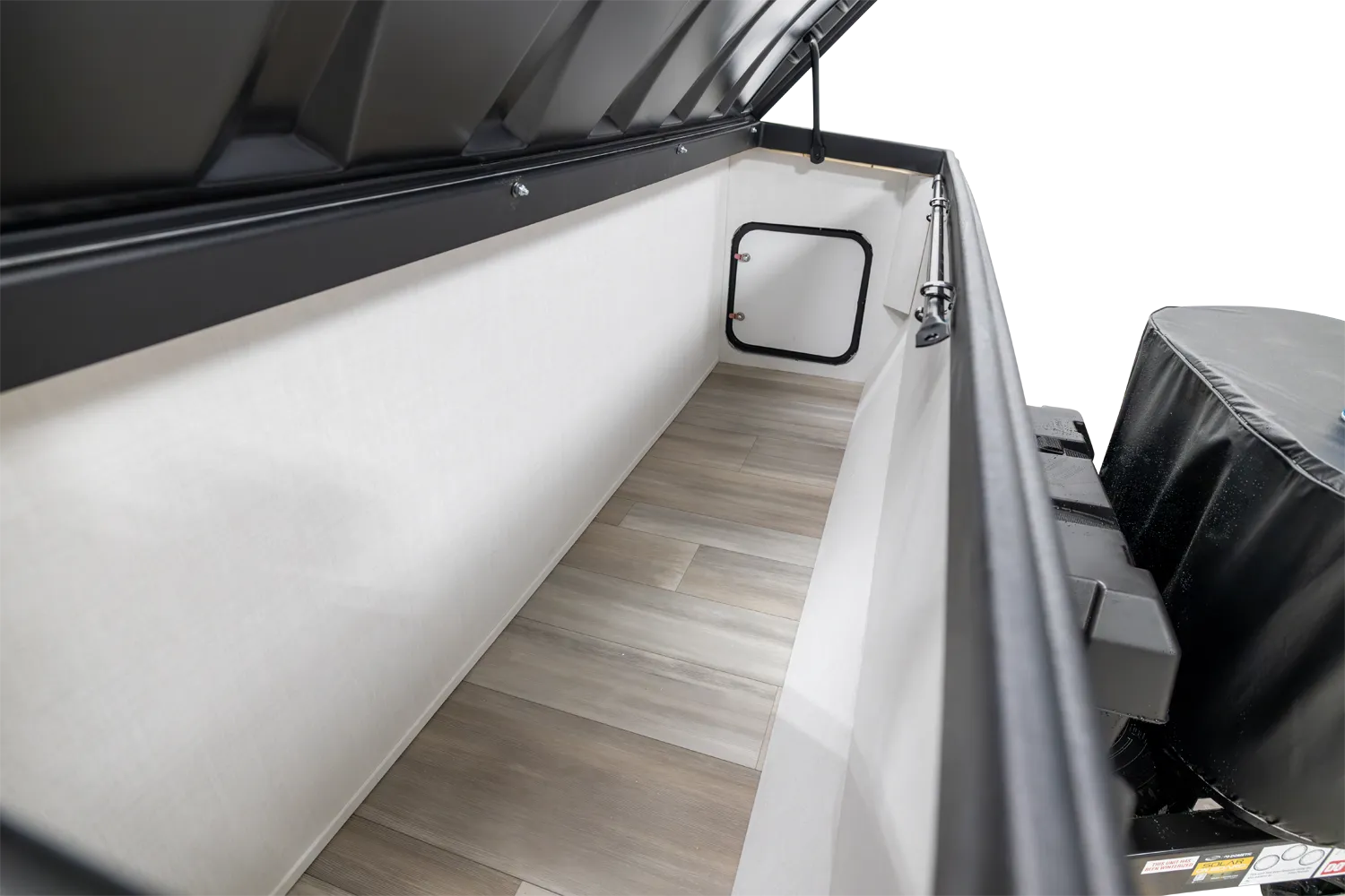 The A122S is exactly like the A122 with a large storage area on the front with all the comfort features and sets up into a firm structure in just minutes. The large window on the front side gives the dinette plenty of seating for four. If you're looking for a small A-frame camper with tons of storage, this is the camper for you.
